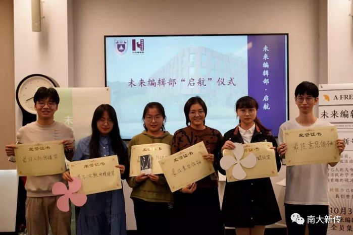 最后,指导老师与“未来编辑部”新老成员在“未来照相馆”合影留念,南大新传“未来编辑部·启航”系列活动圆满结束。
