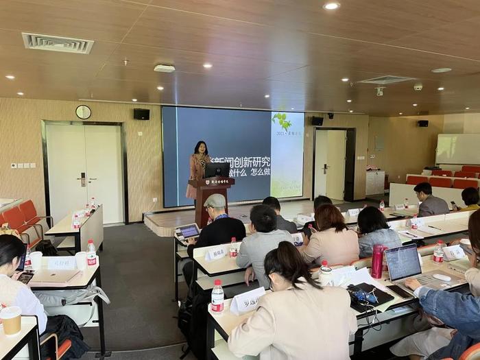 的王辰瑶教授为大家带来题为“谈谈新闻创新研究——做什么、为什么、怎么做”的主题演讲。王辰瑶教授介绍了新闻创新研究需要透过全球的“新闻业危机”反观诸己,在“不确定的救赎”中寻找可能性,并鼓励同学们在“田野”中研究新闻创新。