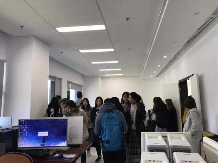 讲解结束后,在志愿者的带领下,同学们来到118剪片室进行参观。2017级本科生张馨月为同学们简单介绍了剪片室的基本情况,并且引导大家观看了新传学子完成的视频作品。