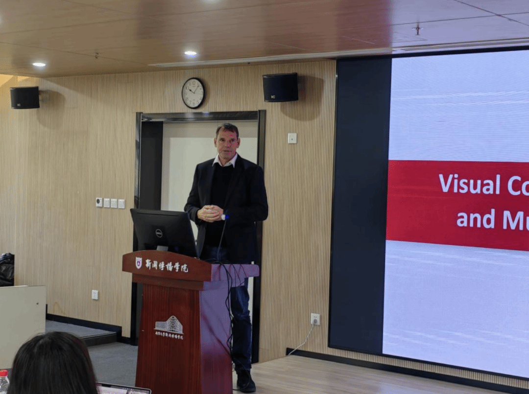 讲座伊始,李晓愚教授指出,我们正身处一个图像无处不在的世界——从手机屏幕到街头巷尾,图像已深度嵌入日常生活。她进一步谈到,自古以来,人类与图像的关系便充满张力:有时过度信赖,有时又全然怀疑;而在VR、AI等新技术不断涌现的今天,这种张力依然存在。洪巴赫教授的讲座正是从这一现实出发,引领听众深入探索视觉与多模态传播的哲学根基。