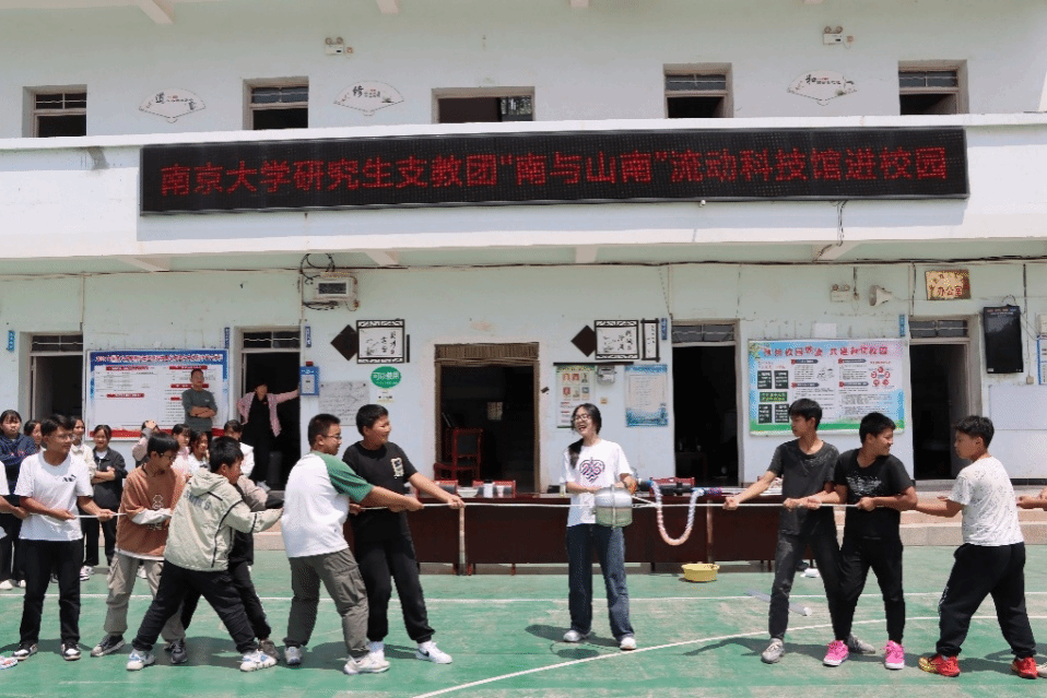 潘玉琪是第26届研支团团长,每到下乡科普,她往往要带着实验器材坐两个小时的车到山里的乡村小学。当地学校的领导总会郑重接待,“孩子们很少能接触到这样的实验课,真的非常感谢南大的老师”。这份远超预期的尊重和朴实深厚的感谢,让潘玉琪每次都干劲满满。每次下乡,她都穿着南大的文化衫,她说:“想对得起他们的期待,也想用南大人的身份时刻提醒自己,不要忘记自己的初心。”