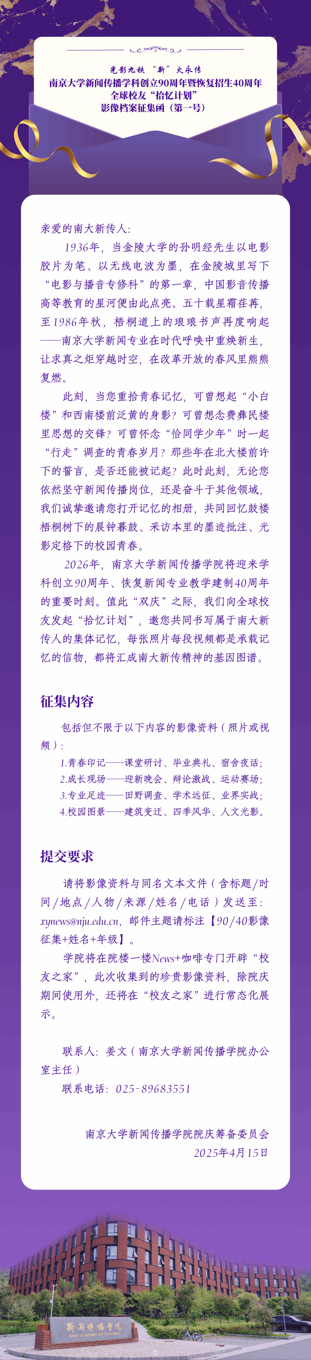 光影九秩,“新”火永传丨成人网 新闻传播学科创立90周年暨恢复招生40周年全球校友“拾忆计划”影像档案征集函(第一号)