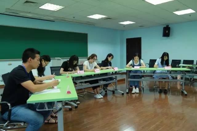 短暂的午休后,夏令营进入了最紧张的面试环节。本次面试将40名营员分为6组,进行无领导小组讨论。各小组派代表抽取面试题后,将分别进入两个不同的考场,接受三位老师的观察和评估。