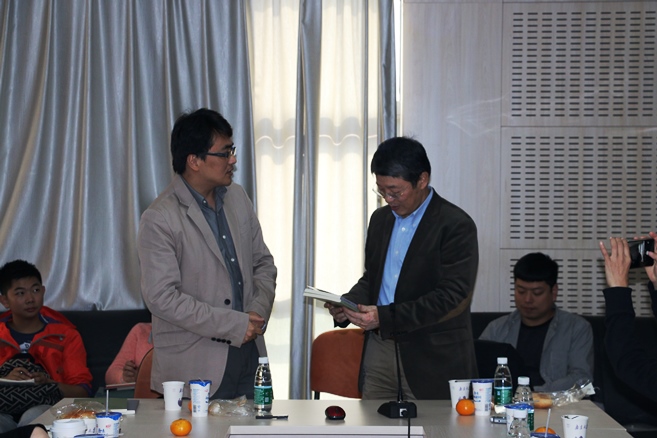 祁林副教授正在向周宪教授赠送第二季博士之家纪念册