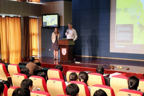 师生以及来自省广电总台等多家媒体的一百多位听众,作了题为“普利策危机报道中心:背后的故事”的精彩演讲。讲座由丁和根教授主持。