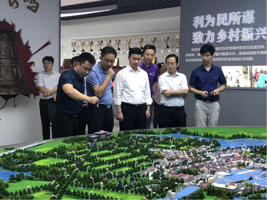 副院长胡翼青、党委副书记闻羽,建筑与城市规划学院副院长罗小龙一行,在苏州市吴江区委常委、汾湖高新区党工委书记、黎里镇党委书记万利,杨文头村党委书记胡宇元的陪同下,先后参观了杨文头村党建展览馆、村民活动中心、村重点企业等,深入考察了杨文头村的党建历史、村落风貌、产业布局和文化传统。