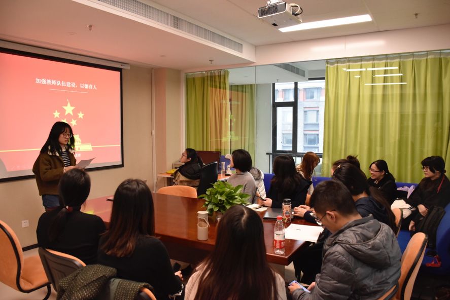 “教育是民族振兴、社会进步的重要基石,是功在当代、利在千秋的德政工程,对提高人民综合素质、促进人的全面发展、增强中华民族创新创造活力、实现中华民族伟大复兴具有决定性意义。教育是国之大计、党之大计”。陈尤佳同志通过学习明确教育的重要性。余慕婷同志则更从教师队伍建设方面分享自己的心得。