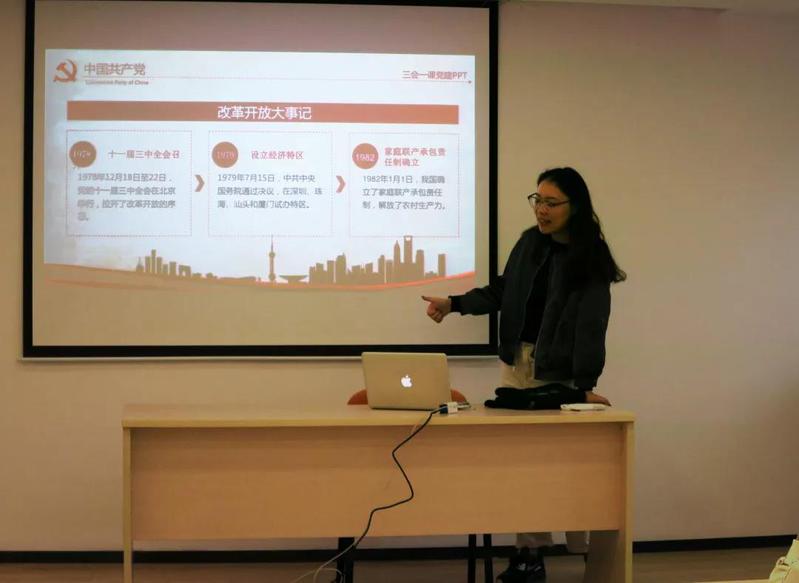 紧接着,副支书张一哲同志组织大家一同回顾了与改革开放相关的重要历史节点、改革开放以来国家取得的辉煌成就,以及新时期习近平总书记提出的涉及深化改革开放的重要论述。在活动最后,她向各位同志细致讲解了党支部的基础规范,同时也对本学期后续的活动安排进行了说明和强调。