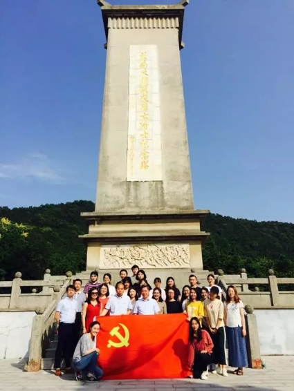 回程路上,刚刚加入党组织的新党员前往苏南反顽战役阵亡将士纪念塔,进行默哀纪念,并面向党旗郑重宣誓。
