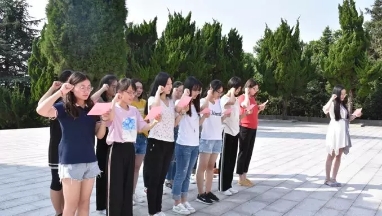 活动的最后,毕业生党员们集体起立,面向党旗,重温入党誓词:“我志愿加入中国共产党……”,他们肃穆直立,右拳紧握耳边。四方的培训室内,与不远处的纪念碑广场上,青年学生党员的铮铮誓言在这片饱经沧桑的红土地上回荡,经久不息。