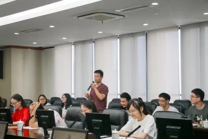 第二个环节是两个党支部同志的结对仪式,该环节的目的是使两个支部的同志加强在政治学习和工作实习方面的交流。新华日报第四党支部的同志首先介绍了自己的工作方向和所在部门基本情况,以及接收实习生的情况,而2017级学硕党支部的同学们则介绍了个人实习意向和擅长的方向。接着,双方支部共同建立了微信群,以便日后沟通交流。