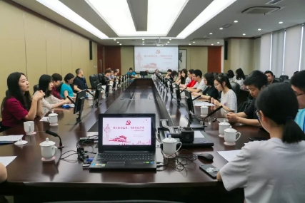 2017级学硕党支部来到了建邺区新华报业传媒大厦,在33楼第一会议室与新华日报第四党支部以“做专家型记者,书新时代华章”为主题联合开展了“共同听一次党课”的支部共建活动。本次活动由2017级学硕党支部书记聂思宇同志和新华日报第四党支部的王宏伟同志共同主持。双方支部成员积极配合,开展了形式多样、内容丰富的共建活动。