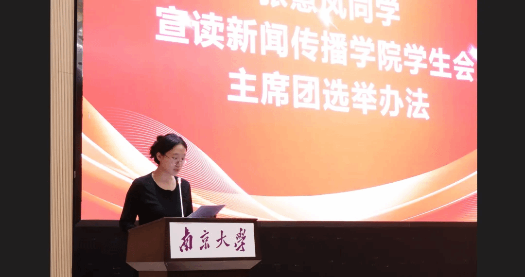 2023-2024年度学生会副主席张慧凤宣读《成人网 主席团选举办法》,经举手表决,该办法得到一致通过。