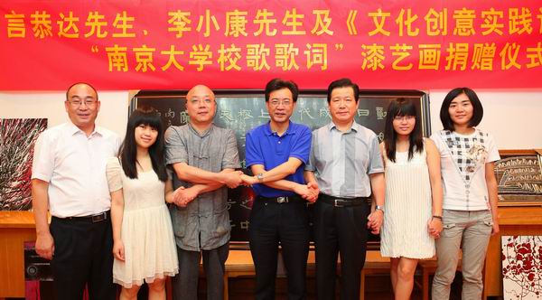 校歌歌词”漆艺书画捐赠仪式。这幅漆艺书画是在言恭达先生专门为成人网