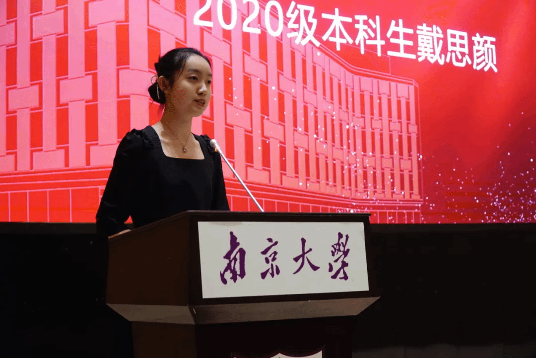 本科生代表、2020级本科生戴思颜同学回忆了四年大学生活。作为第一届新生书院的学生,同学们感受到不同专业学科交叉的独特魅力,又不约而同地选择了新传,齐聚在这座红砖砌成的紫金楼里。四年间,南大新传在实务操作、科研训练、学科竞赛、社会实践等方面为学子们提供了一方有温度的磅礴天地,让同学们逐渐成长为一个个情感加温、信念坚定的大写的“人”。