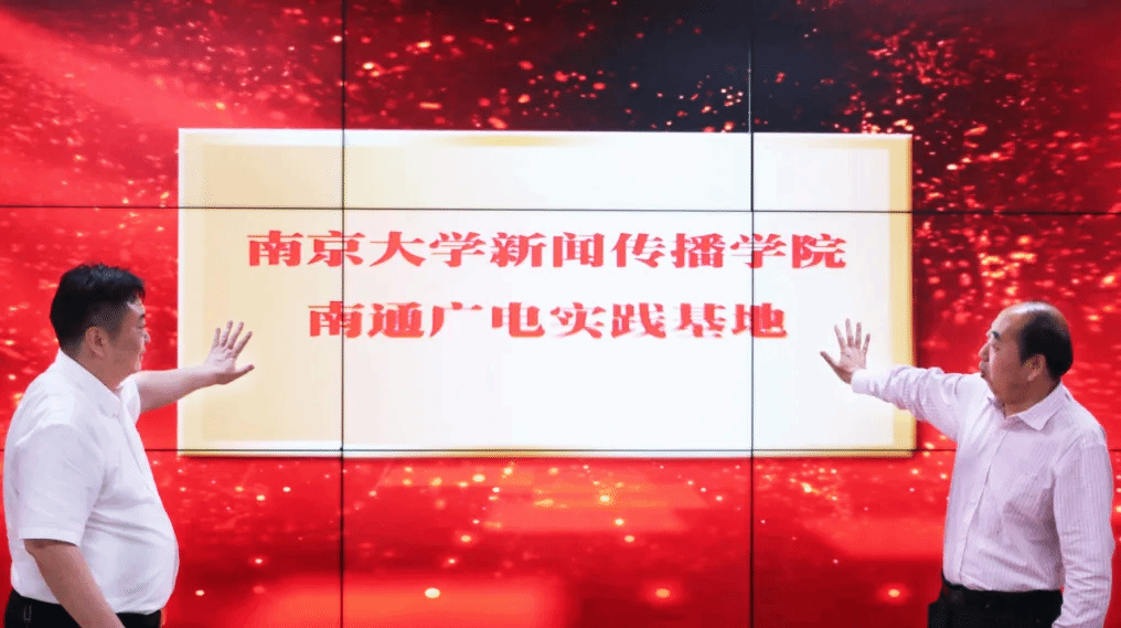 与南通广播电视台的合作共建仪式。学院党委书记刘源和南通广电传媒集团党委书记、南通广播电视台台长张栩龙签署共建协议,并共同启动了院台实践基地项目。