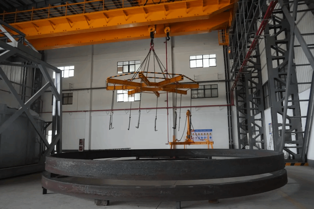 中航卓越锻造(无锡)有限公司坐落于江苏省无锡市惠山区。进入厂房,映入眼帘的是堆叠了几层高的巨型环形锻件,这些锻件大小形态各异,最大的外径有9米,需要18个成年人张开双臂才能围起来。厂房上空滑过两个巨型桥式起重机,它们来回滑动运送锻件。紧接着,走过三个长12米、宽8米、深5.5米的淬火池,淬火池里按照要求盛放着清水和PAG等不同介质。淬火池旁摆放着正在冷却的锻件,锻件表面的金属虽然不再泛红,但隔着3米远的距离,仍能感受到阵阵热浪扑面而来。