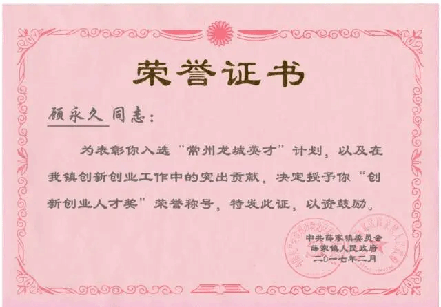 顾永久个人荣誉