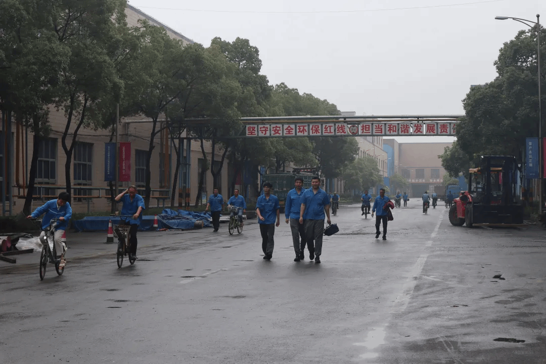 这其中的一家企业尤其特别。中午十一点半,伴随着老式广播里的《冬天里的一把火》,许多穿着蓝色工作服的工人从厂房走出,步行或踩着单车下班。人群中不时穿插着鸣笛的运货卡车和作业车,柏油马路上方“坚守安全环保红线,担当和谐发展责任”的白底红字格外亮眼。