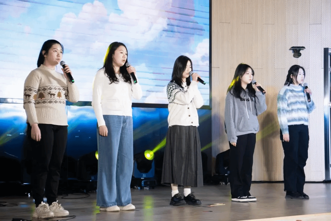 阿卡贝拉表演《不要怕》由黄诗雅、薛童心、许子柔等同学共同演绎。纯净的和声与深情的旋律交织,传递了勇敢面对生活的力量。表演中洋溢的青春气息感染了全场,带来一场纯粹的听觉享受。