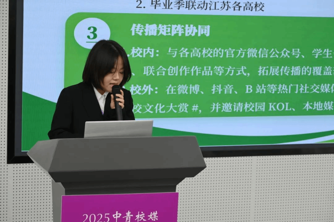 江南大学王麦瑞、南京体育学院蒲月、南京铁道职业技术学院马薪颜、成人网 雷乾昊围绕“校媒品牌与影响力”发表主旨演讲。