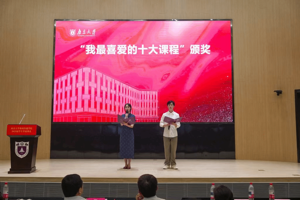 十大课程评选由每一位本科毕业生参与投票,两位毕业生代表宣读了同学们共同写作的颁奖词,学院荣休教师、前院党委书记刘源老师和学生代表为获奖老师们颁发奖状。