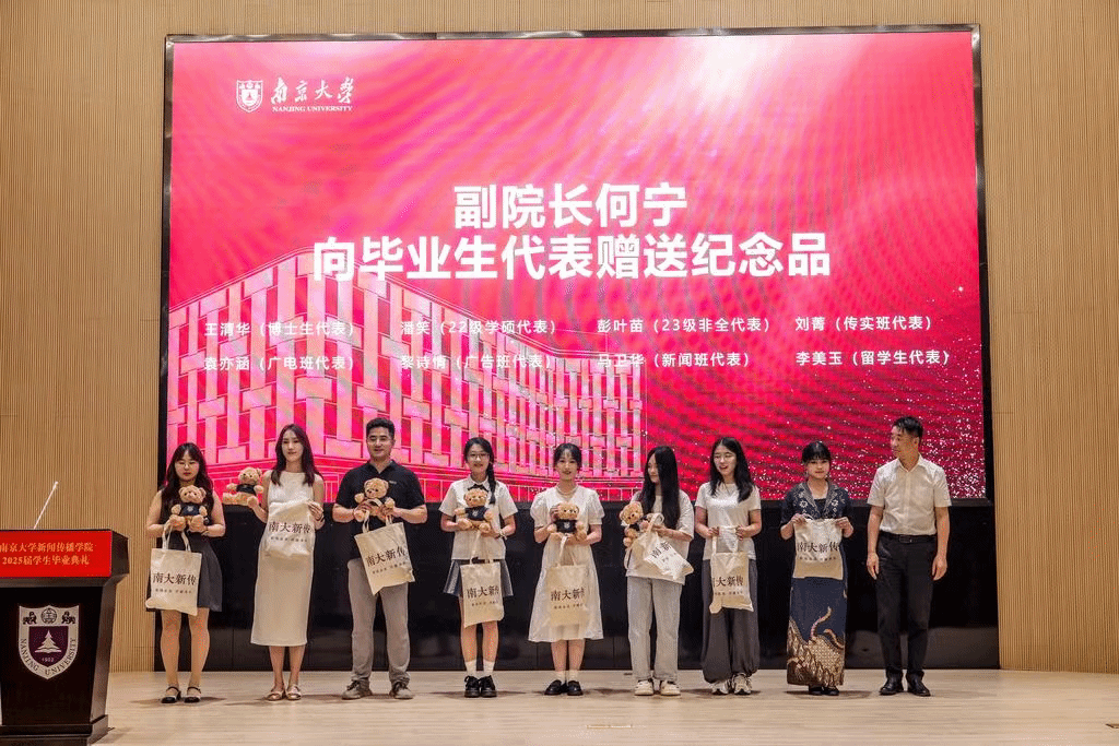 副院长、江苏省广播电视总台副台长、集团副总经理何宁向毕业生代表赠送了这份礼物。