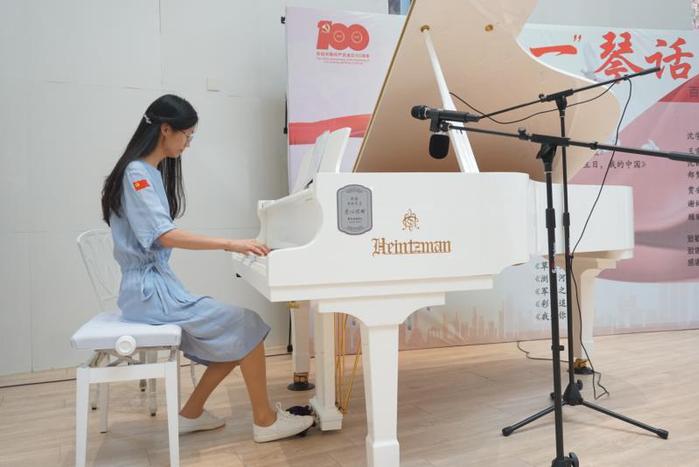 紫金楼中庭,一首首耳熟能详的红色旋律自黑白琴键下流淌而出,回荡在典雅明亮的白色大厅,现场听众仿佛回到激情燃烧的社会主义革命与建设年代,对党和祖国的热烈情感以琴音为媒介,贯穿时空,得到共振。