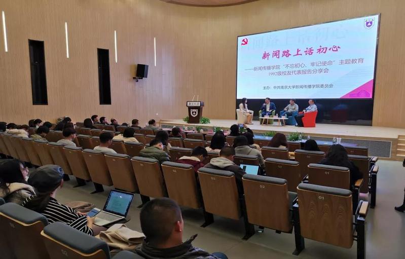 “不忘初心、牢记使命”主题教育活动之“新闻路上话初心”活动在紫金报告厅如期举行。学院邀请三位在新闻媒体行业耕耘多年的1992级优秀校友代表进行了报告分享。重回母校,同侪相聚,他们难掩欣喜,向学弟学妹们讲述自己的初心使命和奋斗经历,带来了干货满满的感悟与建议。