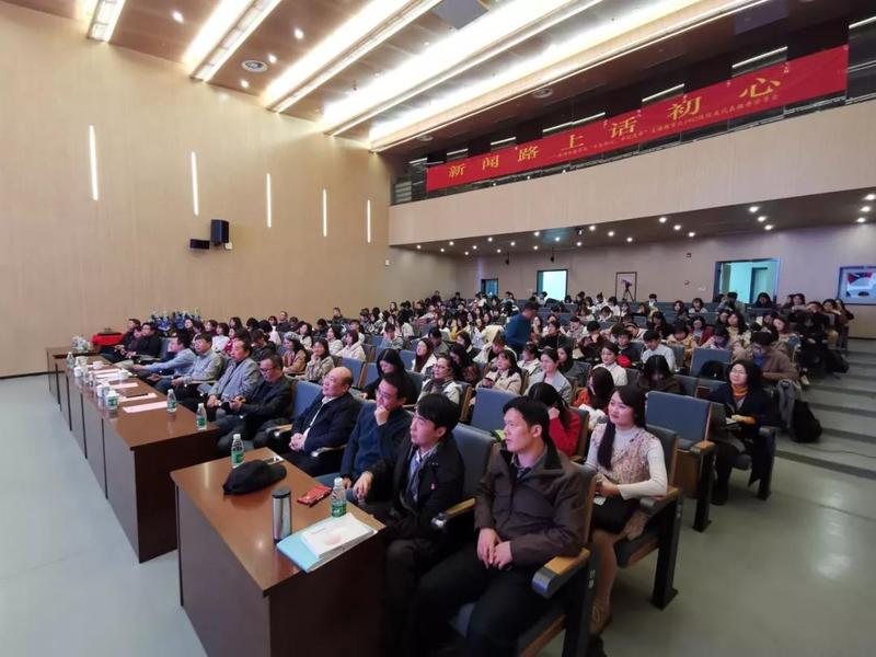 在温馨有趣的开场视频结束后,报告会正式开始。院党委书记刘源、执行院长张红军,以及全院党员、入党积极分子和学生代表来到现场,与校友交流互动。院党委副书记闻羽作为主持人,依次介绍与会嘉宾。三位主讲嘉宾分别是新华社福建分社副社长、总编辑顾钱江,羊城晚报报业集团党委委员、管委会副主任、羊城晚报副总编辑孙璇,《新华日报》社副总编辑、党委委员,中国江苏网董事长、总编辑陆峰。