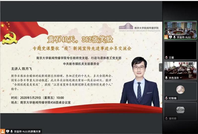 专任教师党支部、行政与退休教工党支部以及马鞍山市博望区新市镇机关党支部委员会的60余名党员通过线上线下相结合的方式,共同参加了一场别开生面的抗“疫”专题党课。江苏省宣传系统新冠肺炎疫情防控先进个人、新华日报全媒体时政新闻部主任助理陈月飞以“黄石40天,362张笑脸”为主题,分享了一位勇敢“逆行”的新闻人在战“疫”一线的所见所思所感。本次活动由成人网
