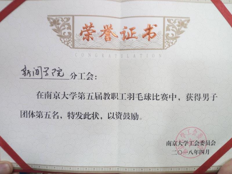 成人网 教师男子羽毛球队,获南大羽毛球团体赛第五名!