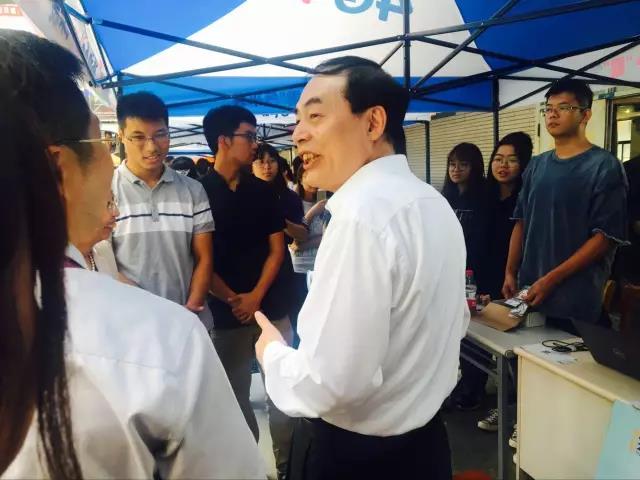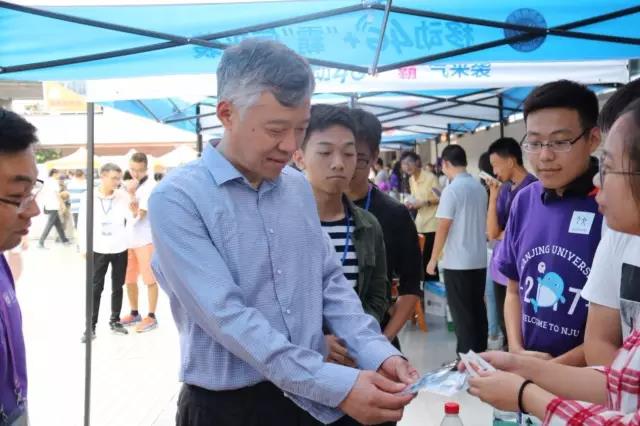 这么盛大的新生报到,自然少不了校领导们和院系老师的身影。人文科学试验班学工组组长、建筑与城市规划学院党委副书记芮富宏老师,人文科学试验班辅导员王霏皓老师、范峻恺老师一直在迎新展台陪伴着志愿者,迎接着新生们和家长们。帅帅的张异宾书记和萌萌的陈骏校长也先后到访人文大类的展台,向新生及其家长们表示欢迎和感谢,询问志愿者们和老师们此次迎新工作的感受和收获。志愿者们在吸取了没有约到张异宾书记合影的教训后,成功地与陈骏校长进行了合影留念。五个院系的同学们纷纷露出开(得)心(逞)的笑容。