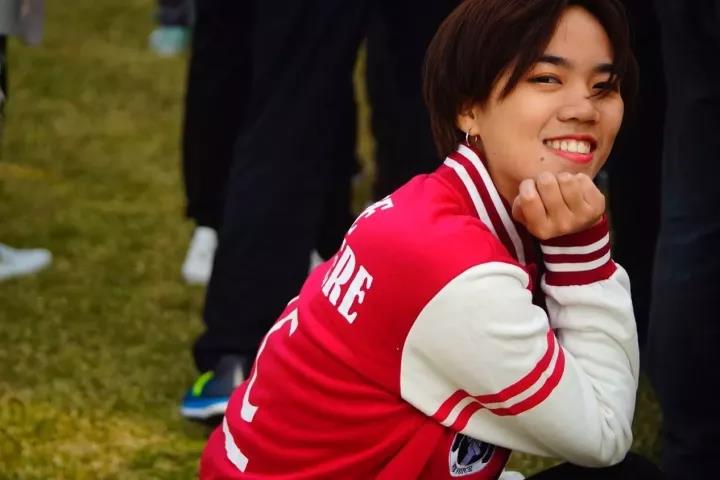 朴实的微笑中透露着一丝反披院服的时尚