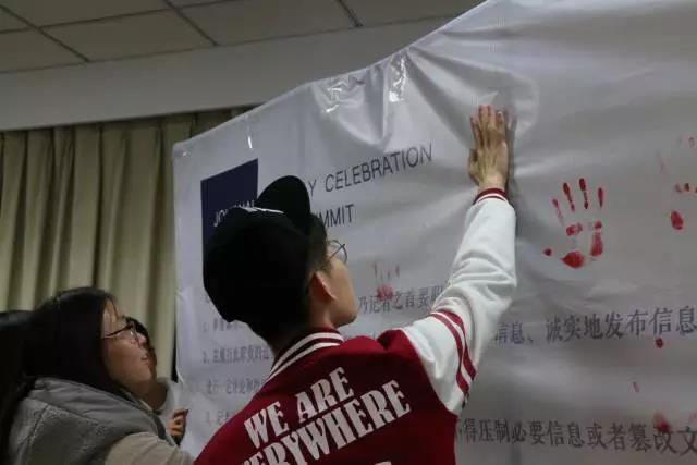 闭幕式在主持人的引导下,所有与会同学于手印墙上留下了自己的手印,为这个为期两天的“记者节特别活动暨校园媒体峰会”画上了圆满的句号。