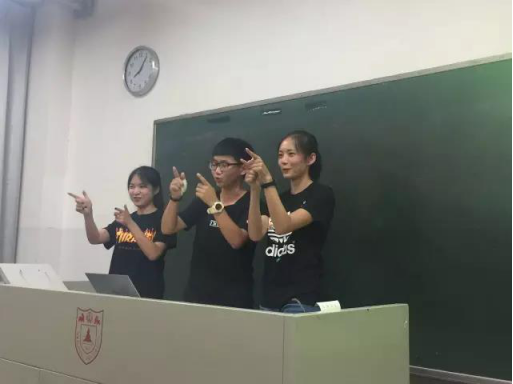 首先登场的是最为严肃认真萌的学科部啦,三位学姐清一色的黑白风格有没有非常默契呢!宣讲的她们向你们比心哦~快到我们碗里来吧!