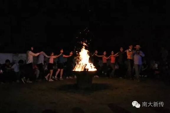 刘源老师的一曲《呼伦贝尔大草原》,烤肉的香气,跳动的火苗和欢乐的舞蹈听说是新传院皖南行篝火晚会的标配。在活泼热情的老板邀请下,特色的宏村时尚秀也走起来了,以色列同学金思丽更是带动全场一起舞动起来,击鼓传花的游戏怎么也停不到男生手中,成为这场晚会独特的元素。天公作美,直到晚会将要结束时才下起细雨。