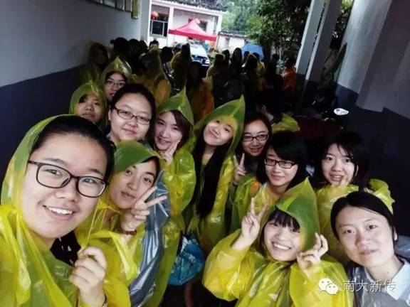 馒头,稀饭,配以“极其入味”的鸡蛋和咸菜,新的一天在暴雨中缓缓拉开帷幕。正当同学们担心西递难以成行时,志萍姐贴心地为每人分发了一件雨衣,穿上雨衣之后的众人立即化身萌系小黄鸭或者科幻大片主角。