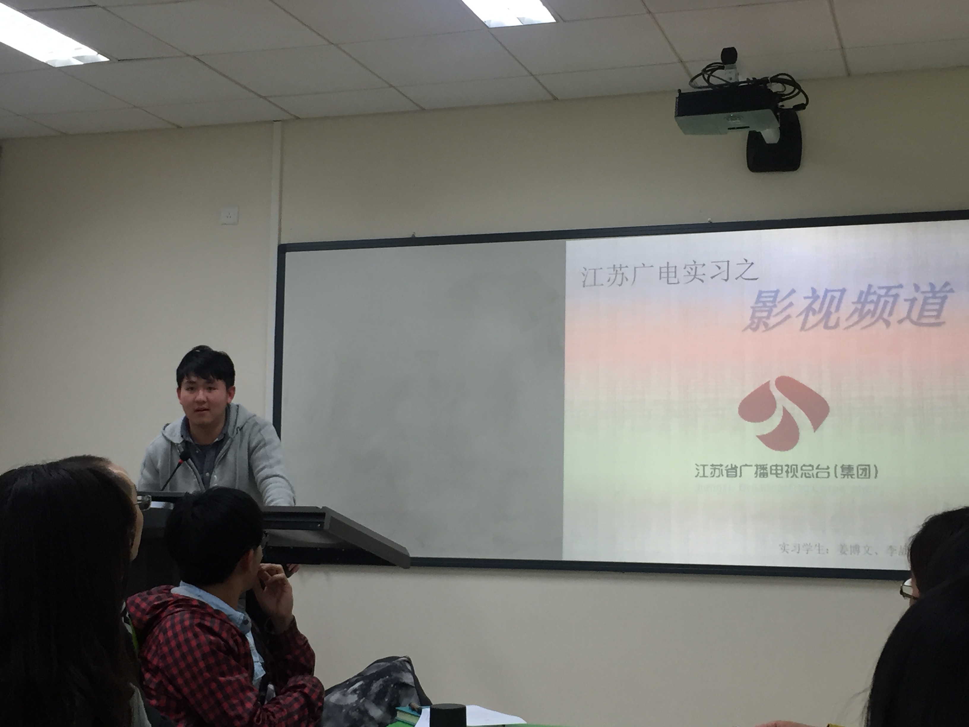 在辅导员吴科老师的主持下,实验班的同学们以实习频道为小组,分别进行了成人网、综艺频道、教育频道、城市频道和影视频道的实习经验分享。