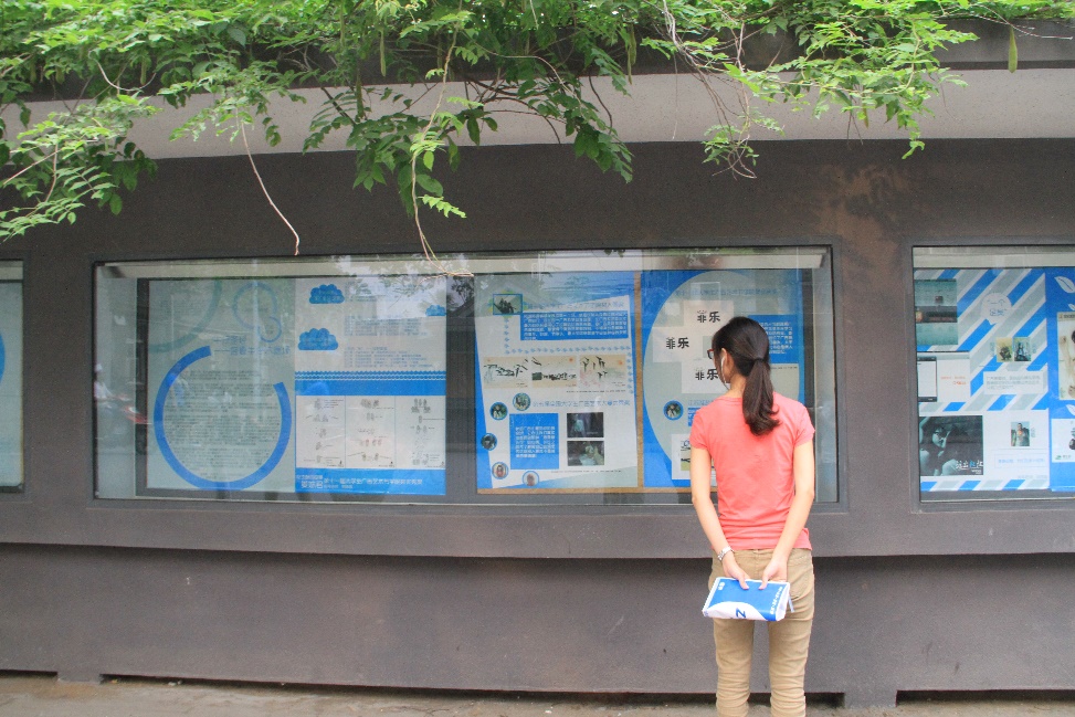 2010级广告班的优秀学生作品在鼓楼校区南园宣传栏展出。