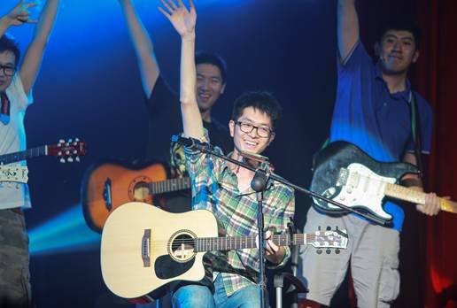 五位研究生学长原创的吉他弹唱《来到南大的第一天》拨响了怀念校园的第一根弦,大男孩们快活的歌喉和大屏幕上播放的广电班同学精心制作的MV,歌词和视频中那熟悉的关于母校的点点滴滴自然温暖地令人如沐春风。