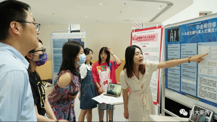常誉中、林凌、孙广哲、税戈洋四位同学以《你会相信谁:AI 合成主播和真人主播反诈宣传效果分析》为题,通过实验研究,探索AI合成主播与真人主播在反电诈题材播报方面的效果差异。