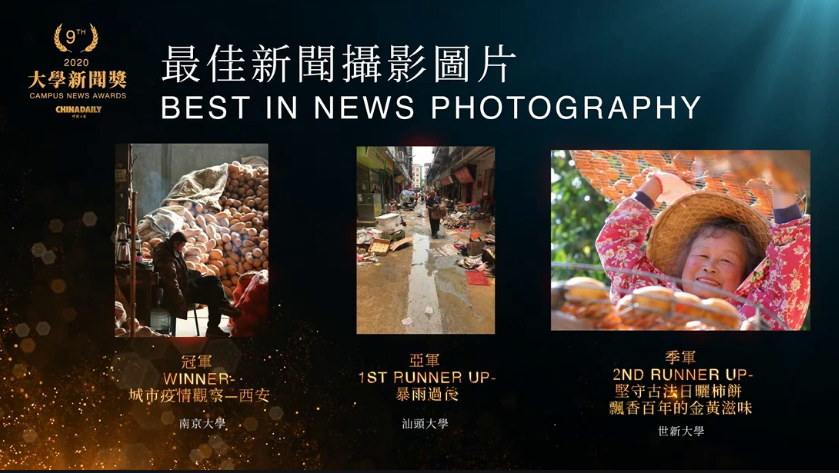 李远浩同学的摄影作品《从西安最大菜市场看蔬菜供应 |防疫观察》获得最佳新闻摄影图片组冠军,李嘉豪、丁浸哲、李远浩同学的《国际残疾人日特辑 |看不见的乐团》获最佳新媒体报道(中文组)亚军。