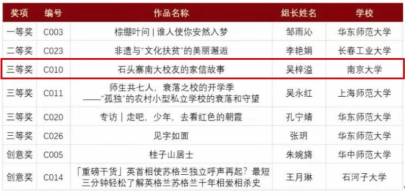 学生作品获得包括H5新闻组二等奖、视频新闻组二等奖和三等奖、数据新闻组三等奖和图文报道组三等奖在内的五项大奖。