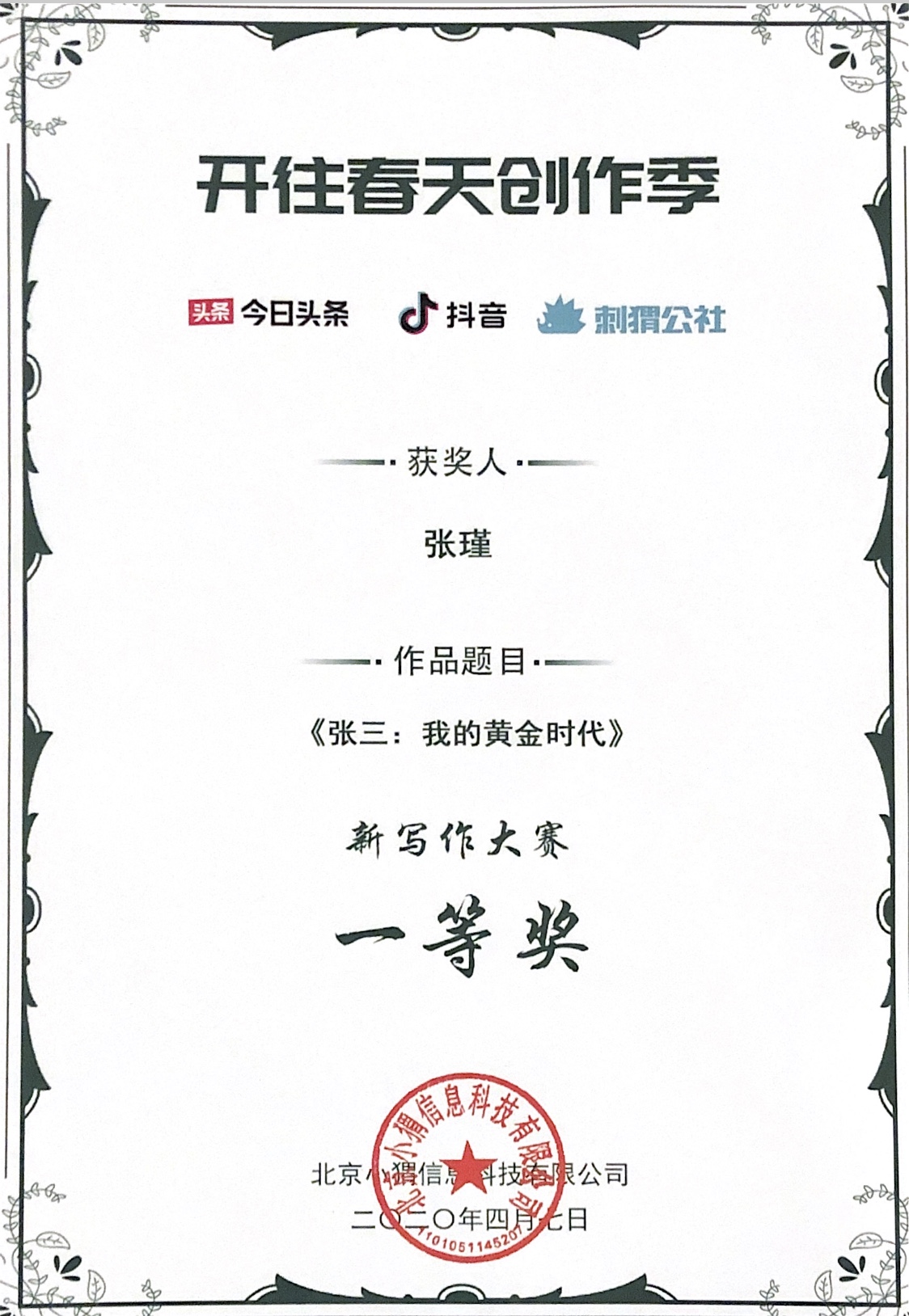 获一等奖作品《张三,我的黄金时代》讲述一个甘肃青年在北京多次创业失败,依靠网贷继续北漂的故事。评委认为:“一篇精彩的文章,写出了一个网贷青年的困境。他的困境是多维的,前时代年轻人的榜样王小波、这个时代新的观念如区块链以及罗胖推销的观点,奇妙地混杂在了这个没上过高中的甘肃年轻人身上,从而让他的命运闪烁出了一道奇特的光芒。他生活在城市与乡村、文艺与商业、理想与现实等多层二元对立中,在这些二元对立的张力下,一步步走向了越陷越深的困境。他的困境既是个人的,也是群体的,更是小镇青年命运的缩影”。