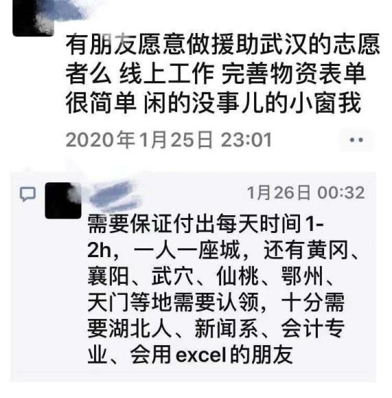 当晚10点,管理群建起来了,前后有二十几个同学加入,团队初具规模,来自各院系的同学司各其职。“人文的、社科的、艺术学院的、外院的、商院的、软院的、医学院的……” 韩政把NJU自组湖北援助团形容成一个“多学科大集合”。