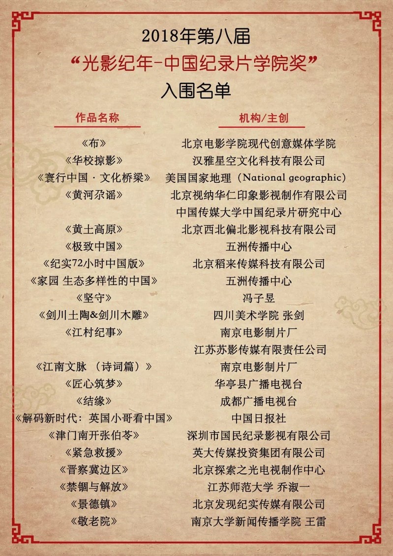 12月28日晚,由国家广播电视总局指导,中国传媒大学主办,中国纪录片研究中心承办的第八届“光影纪年-中国纪录片学院奖”颁奖典礼在中国传媒大学举行。成人网