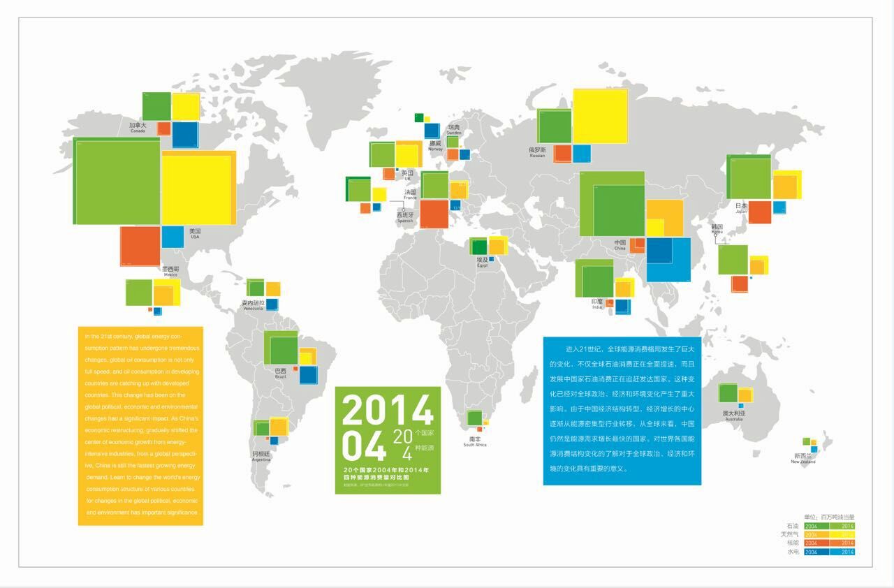 2015级传播学专业研究生袁蔚然同学凭借《中国濒危鸟类分布信息图》斩获二等奖,2015级新闻与传播专业研究生熊潇、闫发聪、宋双团队也凭借作品《中国主要省市十年二氧化硫及烟尘排放量示意图》获得了二等奖。此外,2015级新闻与传播专业研究生夏林霞、王福慈、汪睿团队的《2004年和2014年四种能源消费量对比》获得了比赛三等奖。