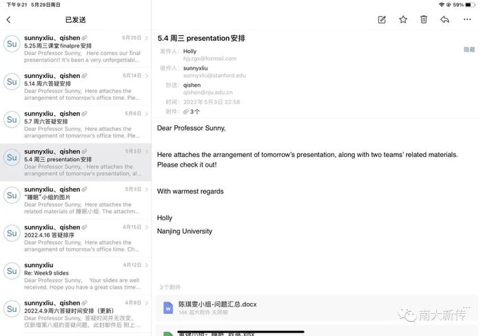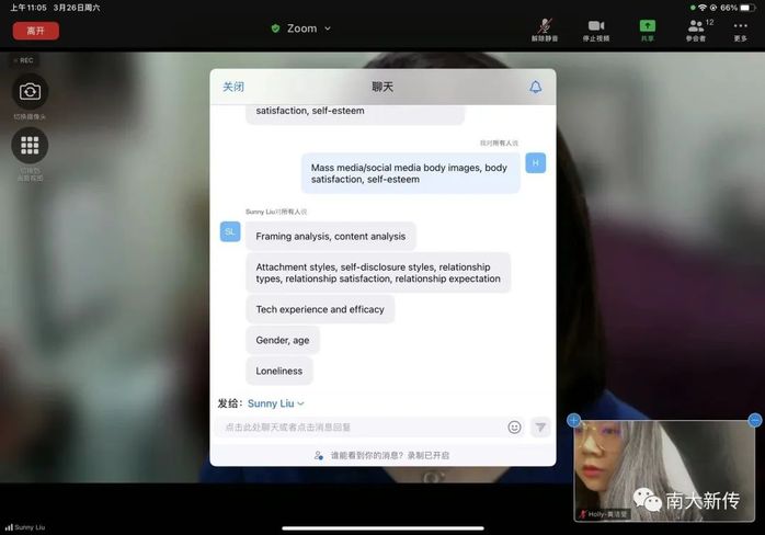 在课堂之外,同学们积极向老师提问,老师们也认真解答同学们的每一个问题。学生王晓萱提到:“有一次申老师在担任防疫志愿者,已是十分繁忙疲倦,但还是能及时、全面地回答我各种问题,印象中她给了我关于实验设计的指导,给我提供了很多的帮助和支持。”